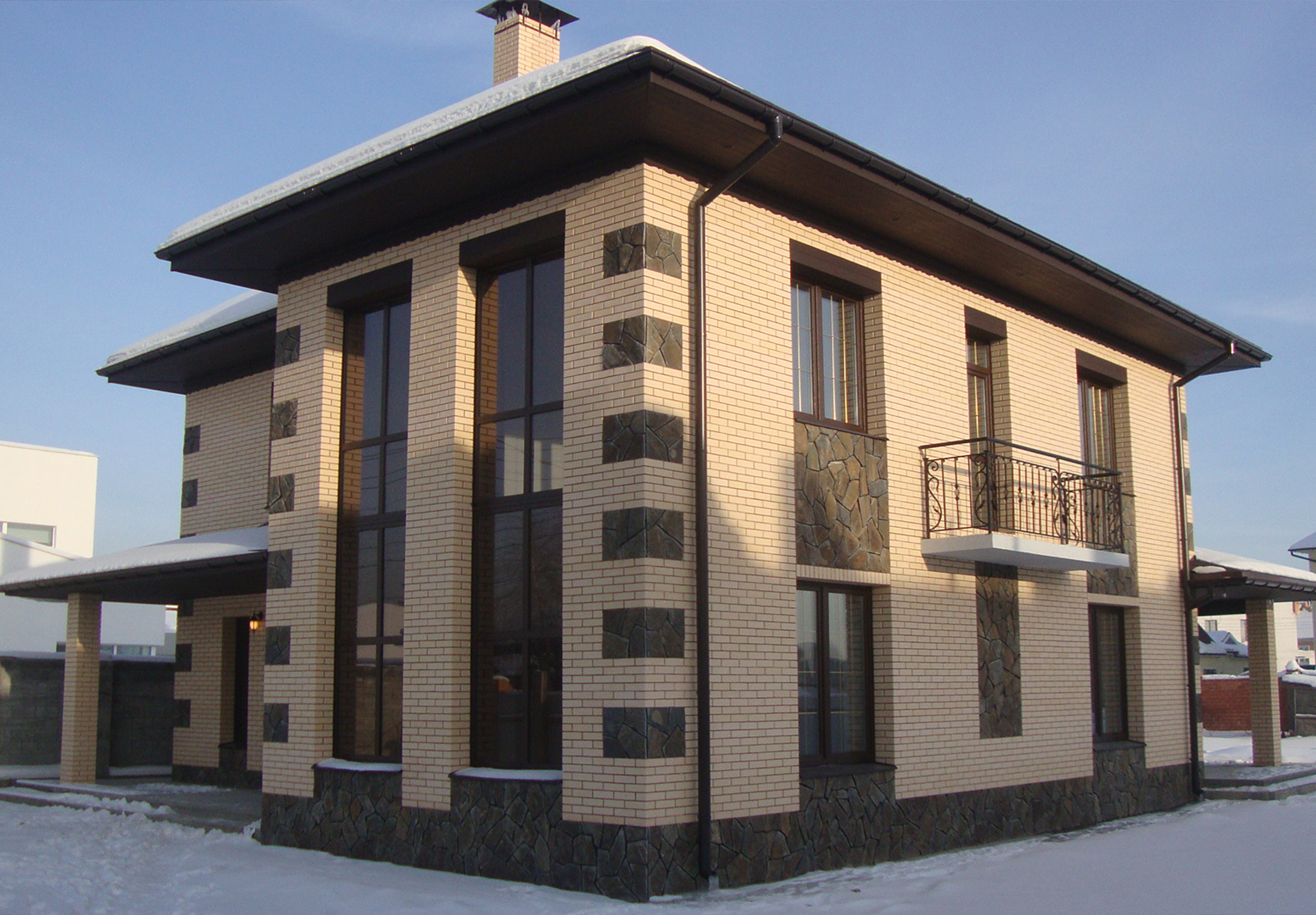 Фасадные решения: Клинкерная плитка, термопанели и архитектурные элементы.